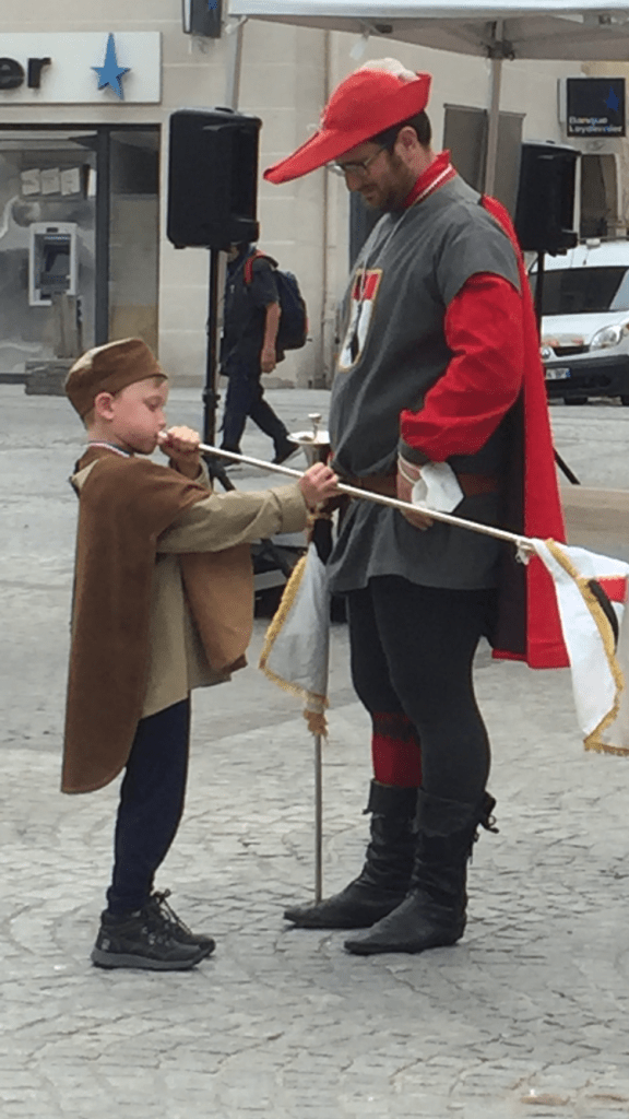 Din când în când zăresc oameni răsfirați în biserică în costume de teatru. Numai la sfârșitul ceremoniei am înțeles: era hramul catedralei și erau veniți oaspeți dintr-un oraș italian de dincolo de frontieră, înfrățit cu orașul Mouûtiers. Hainele cu care erau îmbrăcați nu erau costume de teatru ci veșmintele lor tradiționale.